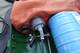 Der vorhandenen 1 Liter O2 Flasche mit Originalregler wird also über den Füllanschluß hochdruckseitig eine gleichgroße Preßluftflasche mit gleichem Druck parallel geschaltet. Der Konstantflow wird durch eine Nadeldüse, welche einfach am Original Nitrox Anschluß angesteckt wird, realisiert.