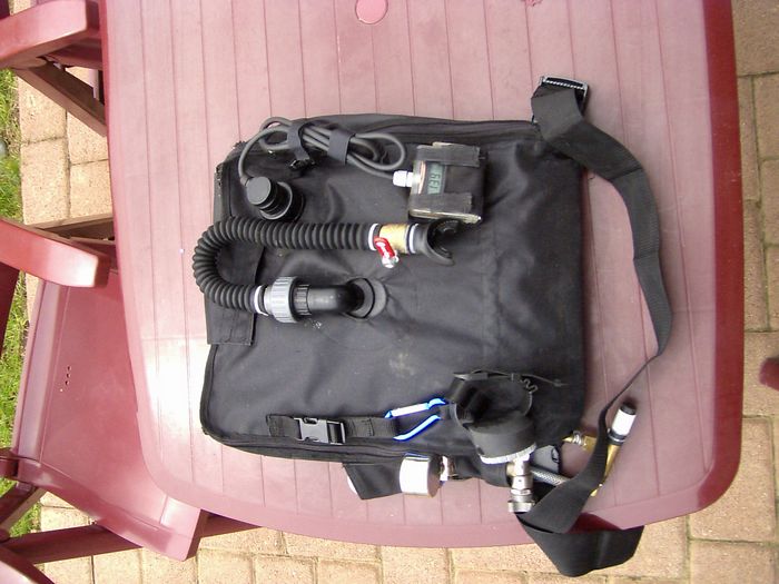 Komplett mit Kompass und PPO2-Meßgerät. Das Gerät ist per Klett befestigt und damit abnehmbar.