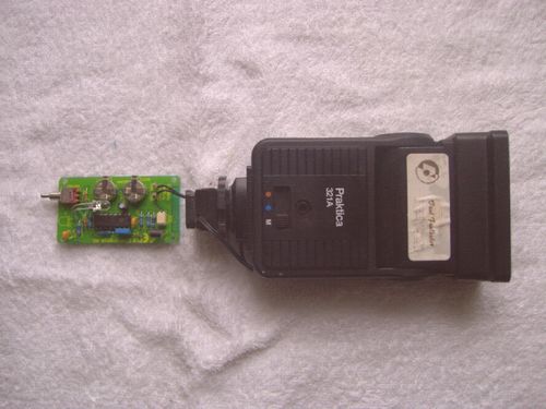 Der Blitz mit optischem Auslöser. Diese Schaltung gibt es als Bausatz incl. Leiterplatte bei einem Elektronikversand.