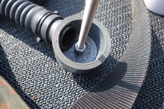 Blick in den Schlauchstutzen. Besteht aus einer PVC Endkappe.