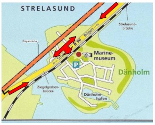 Anfahrtsskizze und Öffnungszeiten des Marinemuseums täglich von 10 - 17 Uhr; 01.Mai bis 31.Oktober