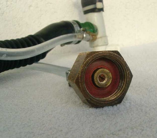 Im Anschluß ist eine "Düse" aus einer M5 Schraube eingebaut, damit die manuellen Dosierung überhaupt möglich wird.