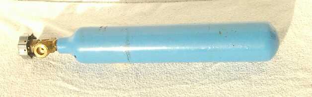 Die Sauerstoffflasche aus dem Schweißbedarf (Rothenberger, nur ca. 0,7l). bei 200 bar also 140 Liter.
