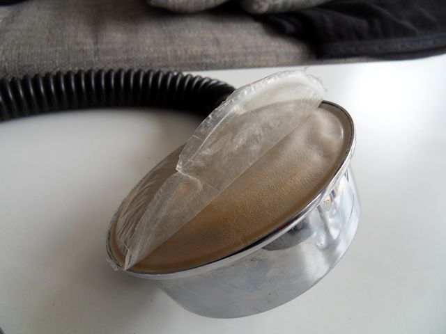 Originalmembran, Werk eines findigen DDR Bastlers, bestehend aus Fensterleder und Platikbeutel