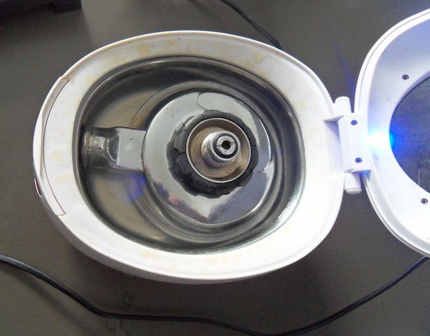 Zuerst erfolgte eine gründliche Reinigung und Entkalkung mit Essig und Spülmittelwasser im Ultraschallreinger. (Billiggerät aus dem Baumarkt) Es erfüllt voll seinen Zweck.