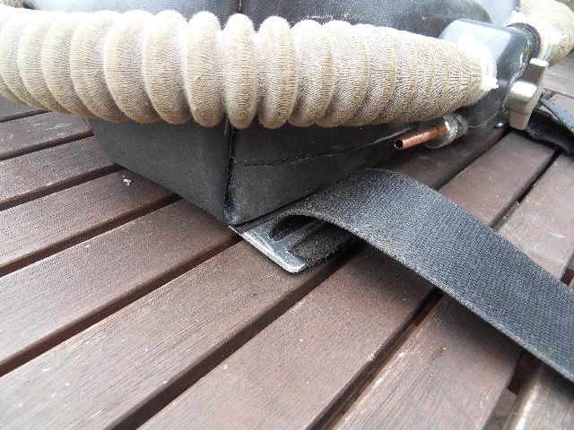 Blick auf die Befestigung der Schultergurte, bestehend aus alten Sicherheitsgurten, die man beim Autoschrott schon mal kostenlos bekommt.