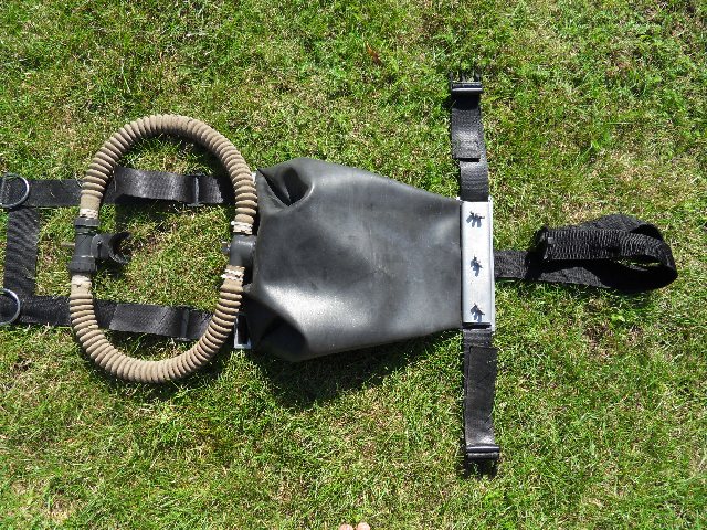 Der Gegenlungenrucksack, rechts der Schrittgurt.