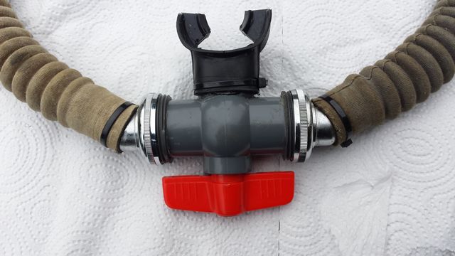 Das Ganzu zusammengebaut. Die Gewindestutzen stammen von DN25 PVC Fittingen und sind nach entsprechender Bearbeitung aufgeklebt. Die Überwurfmuttern sind verchromte Muttern des bewährten Waschbecken Geruchverschlusses.