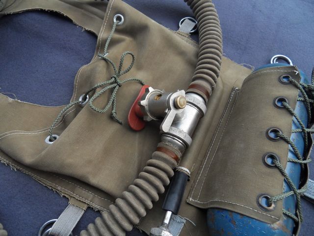 Das montierte ISA M48 Mundstück enthält die Richtungsventile. Die Befestigung der Flasche (Verschnürung) ist ebenfalls KSK modifiziert.