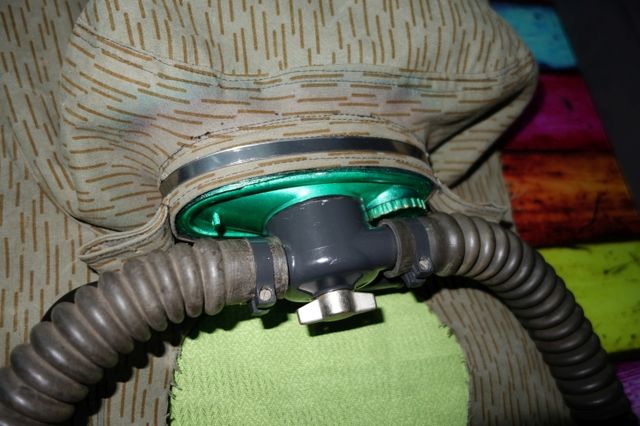 Beim Kopfstück wurde ein Schlauchanschluß verschlossen, ängstliche könnten dort eine PPO2 Messung anbauen. Unter dem rechten Schaluch erkannt man den Füllstutzen.