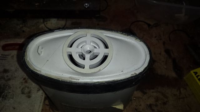 Der Kalkbehälter des RG-UF/M wird unten aufgesägt und vorerst alle Einbauten entfernt.