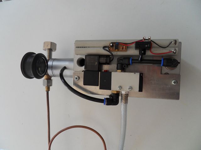 Draufsicht, Wegeventil, Batteriebehälter mit Taktgenerator