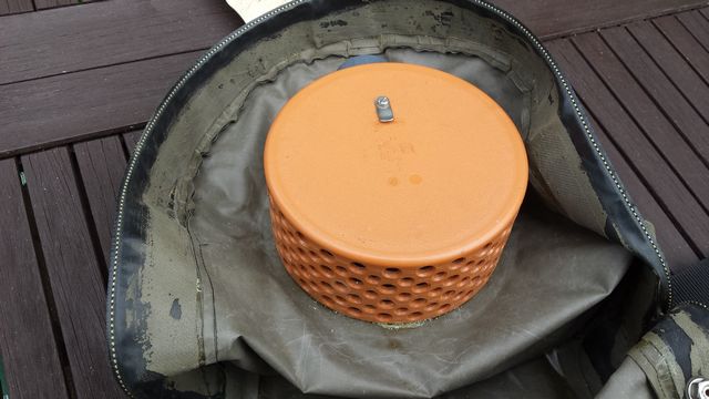 Zur besseren Lastverteilung an Land wurde der Kalkbehälter mit einem V2A Blechhaken versehen.