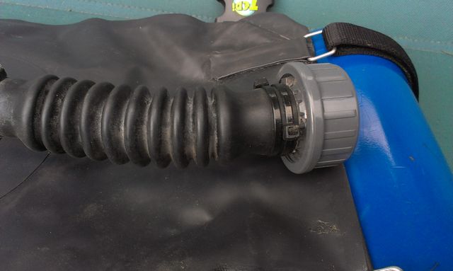 Die Wasserfalle, innen ist ein zusammengerolltes Schwammtuch, saugt kleinere Wassermengen und Speichel zuverlässig auf.