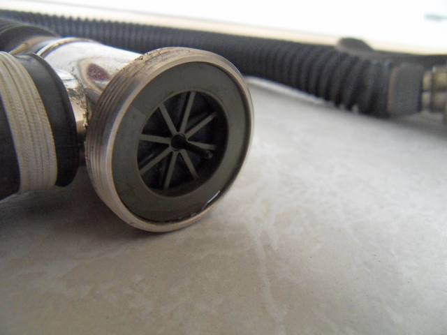 Das Mundstück enthält nur ein Richtungsventil für die Einatemseite, das war weg und wurde durch das Ventil einer Dräger Gasmaske ersetzt