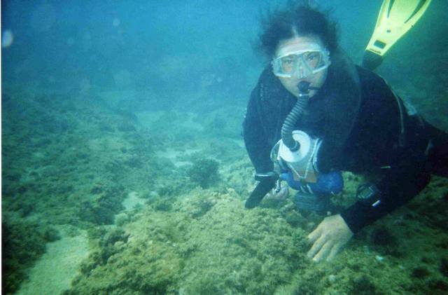Das Gerät von der linken Seite. Sichtbar die Bleigewichte. Es erfolgt gerade die Betätigung des O2 ventils.