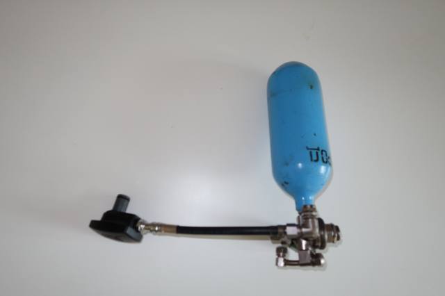 Als Flasche dient diesmal ein 1 Liter Tank vom IDA71 mit integriertem Druckregler, schön klein.
