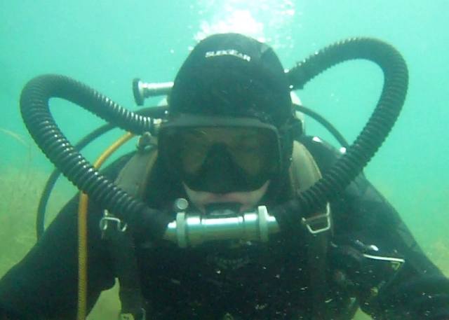 Zu guter Letzt, der Test Unterwasser. Man kann sehr schön den Unterschied zwischen Zweischlauch- und Mundregler testen, da ja beide aus der gleichen ersten Stufe kommen. Die Verschlauchung funktioniert.