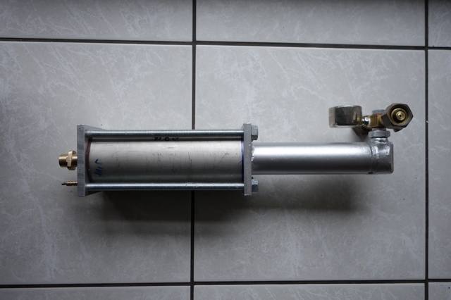 Das Gerät in der Seitenansicht, links der Wasserzylinder rechts der O2 Hochdruckzylinder