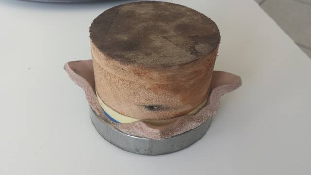Das Geheimnis der Niederdruck Dichtung ist dieses unbeandelte 3,5 mm dicke Lederstück. Nass wurde es in Form gepresst und wieder getrocknet. Es passt sich an kleine Unrundigkeiten und Unebenheiten an.