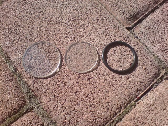 Hier die Scheiben, sie stammen aus Halogen Billiglampen für den Schreibtisch > Schrott.