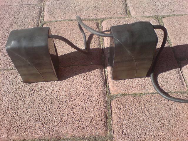 Die Akkus 2 x 6V 4 AH Bleigel, in Reihe geschaltet und die Kontakte, wie schon überall beschrieben, abgedichtet. Ich hab nochmal Gummischlauch drübergezogen und erreiche so vielleicht eine gewisse Wärmeisolierung.