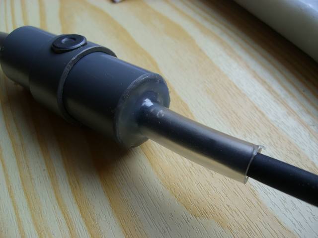 Das Ganze wird in ein passendes PVC Rohr gesteckt und Schrittweise mit Schmelzkleber vergossen. Die Schlauchstückchen dienen als Knickschutz.