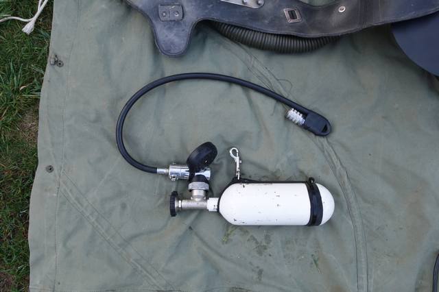 Als Tarierflasche noch mal 1l Preßluft, je nach Anspruch auf Bailout auch größer.