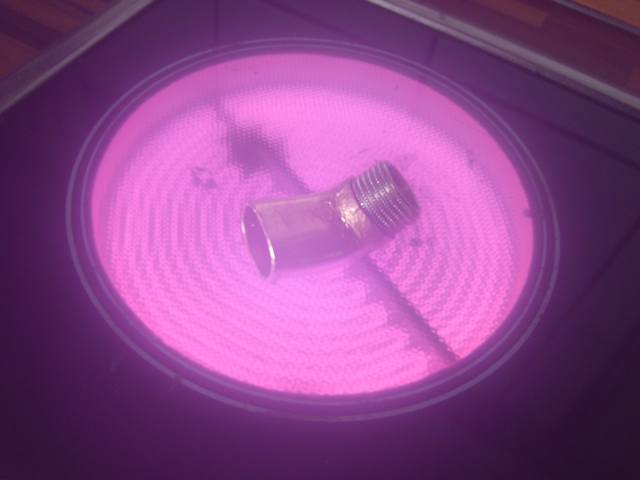 Die Gewindehülse wird mit dem Kupferrohr verlötet. Wenn man keine Lötlampe hat geht das geht sehr gut auf dem Küchenherd in Abwesenheit der Hausfrau:-).