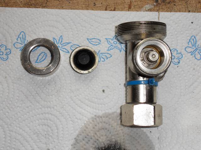 Links die entfernte Kappe, recht erkennt man die inneren Teile des Knopfes.