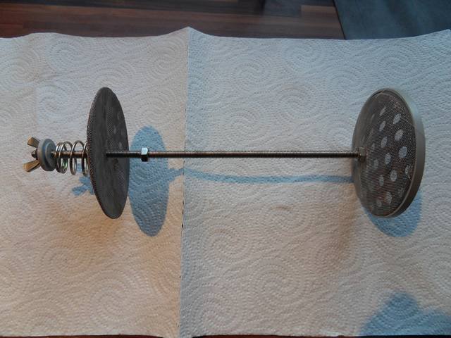 Der Kalk wird zwischen zwei Scheiben, hergestellt aus Schaumlöffeln, federnd eingespannt.