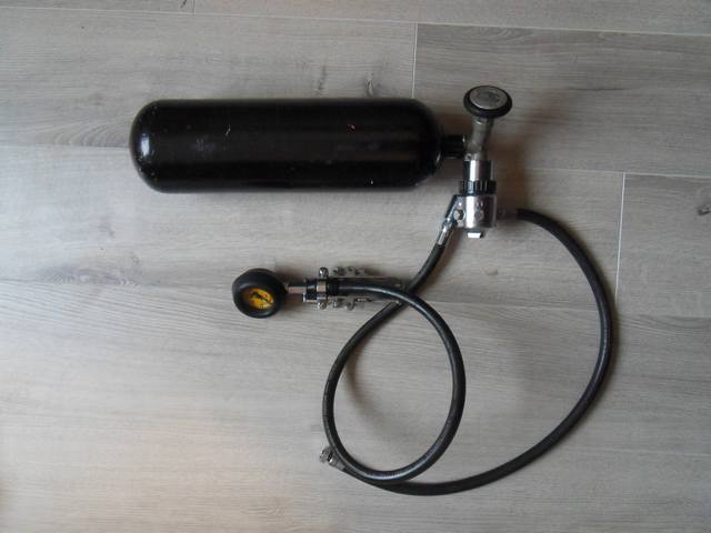 Update, Endzustand: Die gesamte O2 Pneumatik mit Zyklon Regler / Fini und 2l O2 Flasche