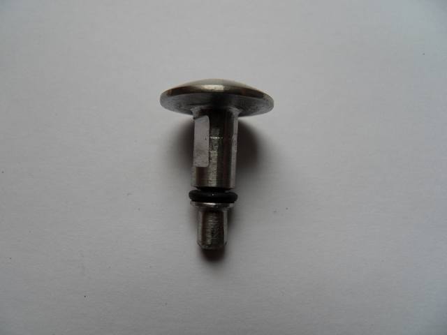 Der Tastknopf besteht aus einer Edelstahl Schlossschraube. Die "Dreharbeiten" wurden wieder in einer Bohrmaschine durchgeführt. Mittels Feile und Eisensäge. Der O-Ring Einstich entstand z.B. durch anpressen eines Eisensägeblattes. Zum Schluss polieren mittels feinem Schleifpapier.