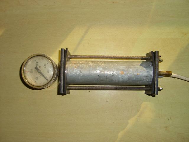 Die fertig verschraubte Kammer. Mittels der Gewindestangen werden die Dichtungen mit dem Rohr verpresst.