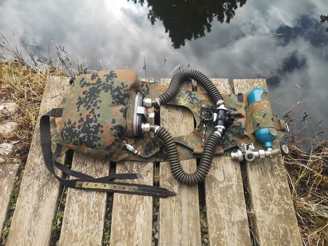 Ein 1:1 Kleintauchgerät 138 Nachbau in Camoflage (Weste und Atembeutel)